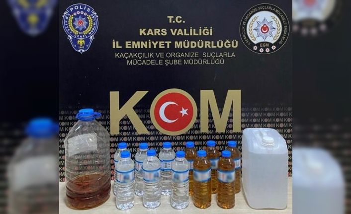 Kars Emniyet Müdürlüğü Kaçakçılık ve Organize Suçlarla Mücadele Şube Müdürlüğü (KOM) ekiplerince yapılan çalışmalarda 12 şişe halinde toplam 6,5 litre sahte alkollü içki, 9 litre sahte alkollü içki yapımında kullanılan etil alkol, 250 paket sigara, 2 bin 800 doldurulmuş makaron, 95 puro ve 11 kilo kıyılmış tütün ele geçirilerek muhafaza altına alındı.