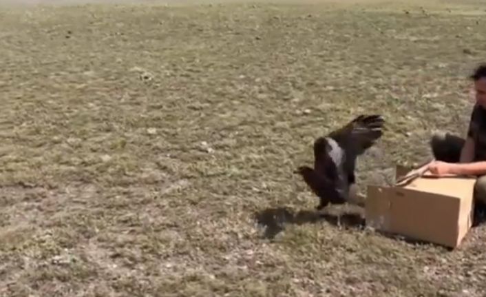 Kars’ta tedavileri tamamlanan kızıl şahinler doğaya bırakıldı.