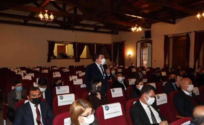 Eğitimde sinerji oluşturarak başta okul yöneticileri ve öğretmenlerin eğitime gönül vermesi gerektiğinin altını çizen Vali/Belediye Başkan Vekili Türker Öksüz, “Öğretmenlerimiz kendisini okuluna, eğitime, öğrencisine adamalı. Başta müdürlerimiz olmak üzere il ve ilçe müdürlüklerimiz bu sinerjiyi iyi sağlamalı. Güzel bir aile ortamı oluşturulursa daha da başarılı oluruz. Akademik başarımız düşük. 2 senedir Kovid-19 salgını maalesef hızımızı kesti. Eylem Planı hazırlamıştık, heyecanla çalışıyorduk ama Kovid-19’dan dolayı bu çabalarımızın bir kısmı geride kaldı. İlk dönem derlenme toplanma dönemi fakat ikinci dönemden sonra bizim bu konuya daha fazla eğilmemiz, okuldaki iş ve işleri takip etmemiz lazım. Bu konuda gayretli olmamız lazım, akademik başarımızı yükseltmeniz lazım. Elbette bizler de destek olacağız, bizler de İl Özel İdaremizin katkısını sağlayarak deneme sınavları yapacağız. Öğrencilerimizin seviyesini artırmaya yönelik çalışmalarımızı tamamladık. Birkaç tane sınav yaparak öğrencilerimizin akademik başarı yönünden destek olmaya çalışacağız” şeklinde konuştu.