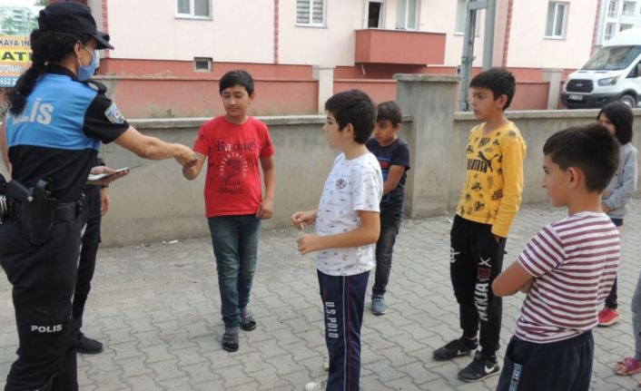 Kars’ta polis parklarda oyun oynayan çocukları bilgilendiriyor.
