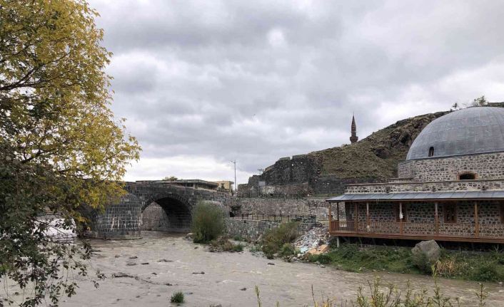 Kentte bulunan Taş Köprü ve Tarihi Hamamların sararan yapraklarla uyumu kartpostal görüntüler ortaya çıkarıyor.
