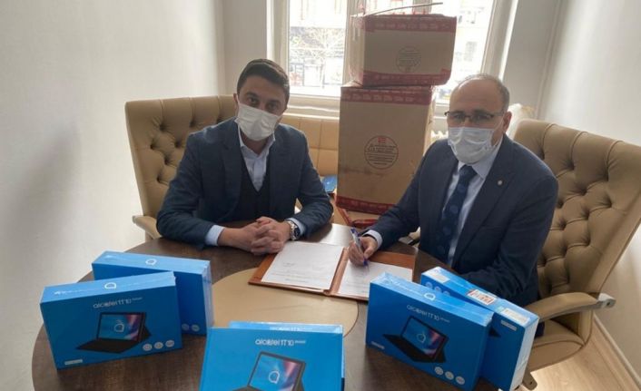 Yapılan konuşmaların ardından 55 adet klavyeli tablet, öğrencilere ulaştırılmak üzere Milli Eğitim Müdürü Acay’a teslim edildi.