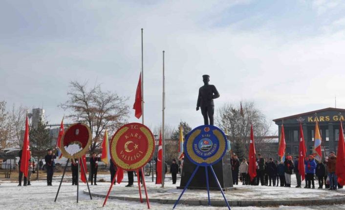 Tören TCDD Gar Binası önünde bulunan Kazım Karabekir Paşa’nın Anıtı’na Kars Valisi Ziya Polat, 14. Mekanize Piyade Tugay Komutanı Tuğgeneral Şahin Yenilmez ve Belediye Başkan Vekili Turgay Kızılörenli tarafından çelenk sunulmasının ardından, saygı duruşunda bulunuldu ve İstiklal Marşı okundu.