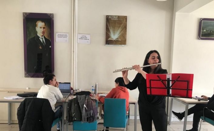 Etkinlikler çerçevesinde Kars İl Halk Kütüphanesi Müdürlüğü’nde haftanın son gününde Kafkas Üniversitesi Öğretim Üyesi Doç. Dr. Sibel Polat’ın kurucusu olduğu Kars-ı Dilbeste Müzik Topluluğu üyesi Tuba Önal tarafından çalışma salonunda sınavlara hazırlanan okuyucular için flüt dinletisi verildi.
