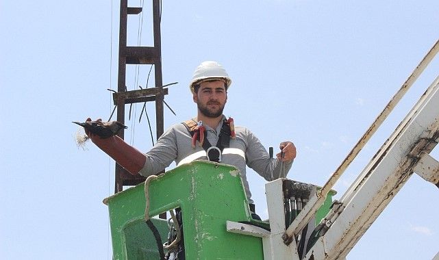 Kars’ta elektrik direğinde mahsur kalan karga Aras EDAŞ ekipleri tarafından kurtarıldı.