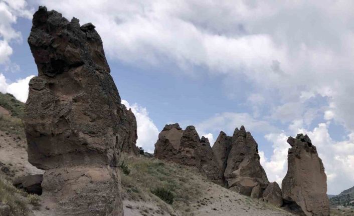 Sarıkamış Komdere Vadisi’nde bulunan doğa harikası peri bacaları görenlerin dikkatini çekiyor. Vatandaşlar peri bacalarının turizme kazandırılması istiyor.