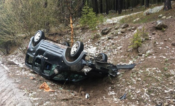 Kars’ın Sarıkamış ilçesinde sürücüsünün direksiyon hakimiyetini kaybettiği araç takla attı.