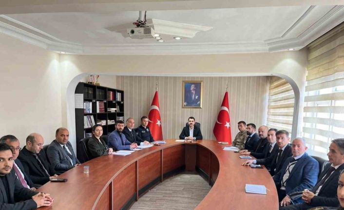 Kaymakamlık toplantı salonunda düzenlenen toplantıya; ilgili kurum amirleri, okul müdürleri ve öğretmenler katıldı.