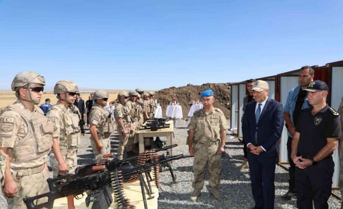 Kars İl Emniyet Müdürlüğü’nce yapılan ve dualarla hizmete açılan poligonu gezen Öksüz, İl Emniyet Müdürü Yavuz Sağdıç’tan bilgi aldı.