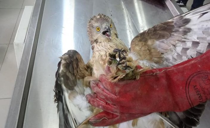 Kars’ta vatandaşlar tarafından yaralı olarak bulunan Arı Şahin’i tedavi altına alındı.