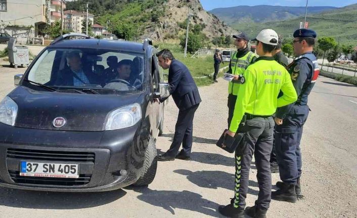 Kastamonu’nun Hanönü ilçesinde Karayolu Trafik Haftası etkinlikleri çerçevesinde yapılan denetimde sürücüler kurallarla ilgili bilgilendirildi.
