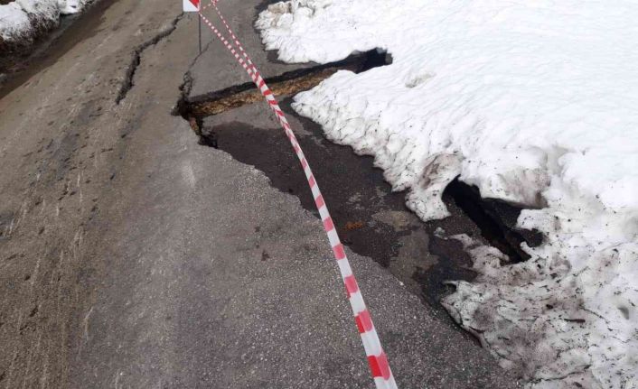 Heyelan sebebiyle köy yolunda göçükler oluştu