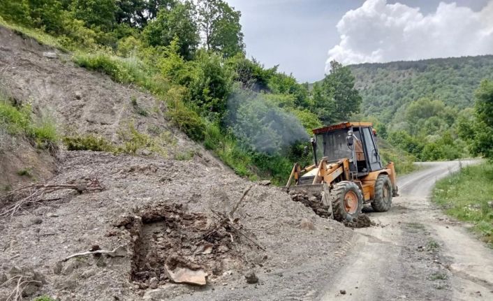 Kastamonu’nun İhsangazi ilçesinde aşırı yağışın ardından meydana gelen heyelan sebebiyle zarar gören köy yolları, açıldı.