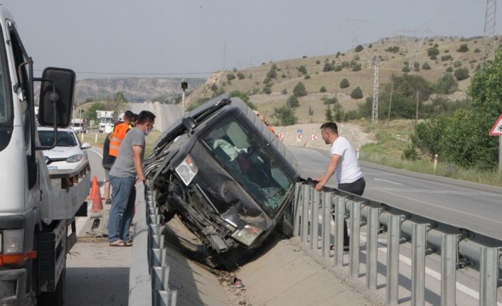 İstanbul’dan Trabzon’a gitmek için yola çıkan ailenin içinde olduğu hafif ticari araç, Kastamonu’nun Tosya ilçesinde kontrolden çıkararak refüjdeki bariyerlerin arasında girdi. Kazada araçta bulunan 5 kişi yara almadan kurtuldu.