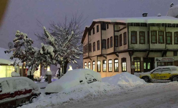 Kastamonu’nun Küre ilçesinde yoğun şekilde etkisini gösteren kar yağışı, ilçe merkezinde doğal ve tarihi alanlarda kartpostallık görüntüler ortaya çıkardı.