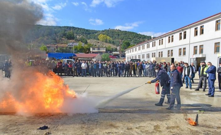 Kastamonu Belediyesi’nde düzenlenen yangın söndürme tatbikatında, çalışanlar yangınlara karşı bilgilendirildi.