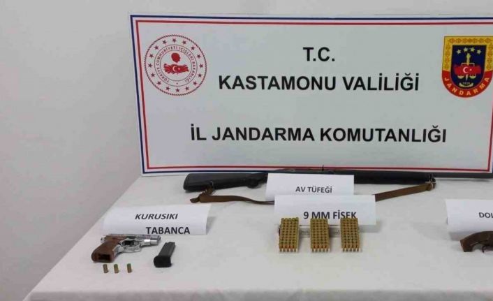 Edinilen bilgiye göre, Kastamonu İl Jandarma Komutanlığı ekiplerince ’genel güvenliğin kasten tehlikeye sokulması’ suçuyla mücadele kapsamında yürütülen çalışmalar çerçevesinde R.K., E.Ş. ve E.E. isimli şüphelilerin üzerlerinde arama yapıldı. Yapılan aramalarda 1 adet av tüfeği, 4 adet tabanca, 3 adet tabanca şarjörü ile 172 adet tabanca fişeği ele geçirildi.