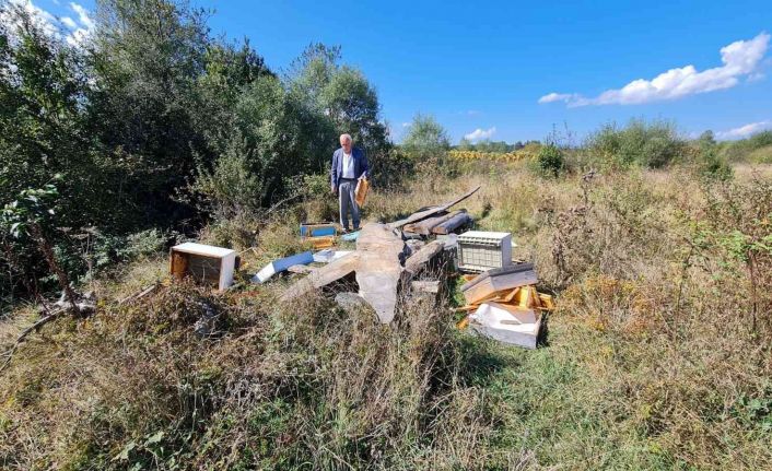 Kastamonu’nun Seydiler ilçesinde ayıların saldırdığı arı kovanları parçalandı, arılar telef oldu.