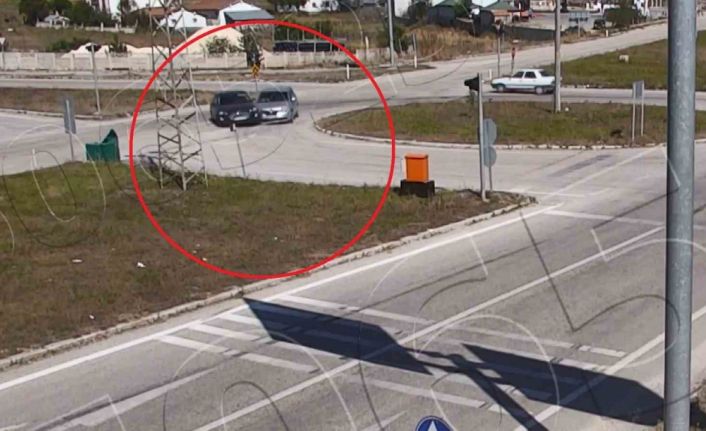 Diğer kazanın kameralara yansıyan görüntülerinde ise aynı istikamette seyir halinde olan otomobillerden biri bir anda kavşaktan dönmek istiyor. Arkada seyir halinde olan otomobil ise bir anda dönmek isteyen otomobile çarpıyor. Savrulan iki otomobil de refüje çıkıyor.