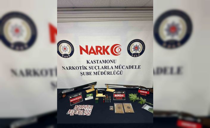 Edinilen bilgiye göre, Kastamonu İl Emniyet Müdürlüğü Narkotik Suçlarla Mücadele Şube Müdürlüğünün uyuşturucu madde kullanan ve satışını yapan kişilere yönelik yaptığı çalışmalar neticesinde bir adreste arama yapıldı. Şahsın üst ve ikamet aramasında 139,58 gram Bonzai maddesi, 149 adet reçeteye tabii hap, kenevir bitkisi, 10,53 gram esrar maddesi, 2 adet ruhsatsız pompalı tüfek, 12 adet tüfek fişeği, 1 adet ruhsatsız tabanca ve 25 adet fişek ele geçirildi. Olayla ilgili gözaltına alınan şahıs tutuklandı.