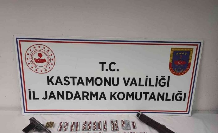 Edinilen bilgiye göre, Kastamonu İl Jandarma Komutanlığı ekiplerince uyuşturucu madde imal ve ticaretinin önlenmesine yönelik yürütülen titiz çalışmalar neticesinde, Kastamonu İl merkezinde C.T. ve V.B. isimli şahısların uyuşturucu madde satışı yaptığı tespit edildi. Harekete geçen ekipler tarafından şüphelilere ait araç ve evlerde yapılan aramalarda, 199 adet sentetik ecza hapı, 25 gram kenevir tohumu, 1 adet ruhsatsız tabanca, 1 adet ruhsatsız pompalı av tüfeği, bıçak, 3 adet cep telefonu ve bin 25 TL suçtan kazanıldığı değerlendirilen para ele geçirildi