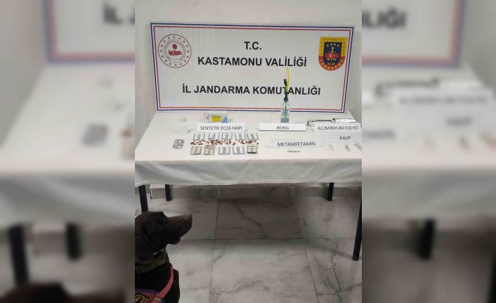Edinilen bilgiye göre, Kastamonu İl Jandarma Komutanlığınca uyuşturucuyla mücadeleye yönelik yürütülen çalışmalar kapsamında gerçekleştirilen operasyonda, 158 adet sentetik ecza hapı, 1 gram metamfetamin, 10 mililitre sentetik kannabinoid katkılı sıvı madde ve 4 adet uyuşturucu kullanma aparatı ele geçirildi.