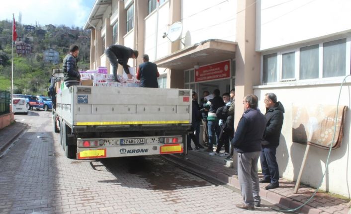Kastamonu’nun İnebolu ilçesinde toplanan gıda ve hijyen kolileri, deprem bölgesine gönderildi.