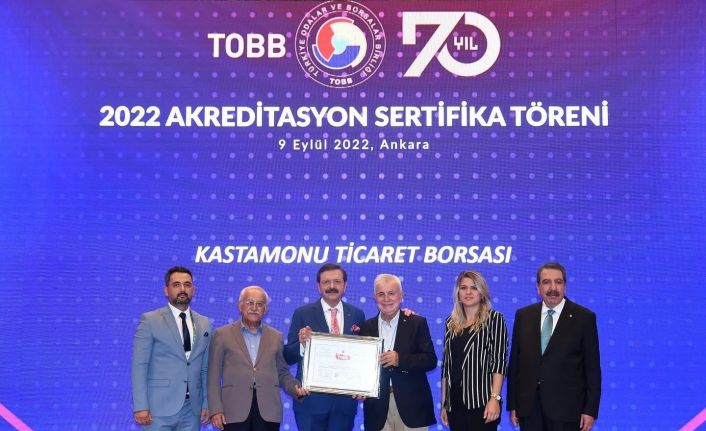 Kastamonu Ticaret ve Sanayi Odası ile Kastamonu Ticaret Borsası’na akreditasyon belgelerini, Türkiye Odalar ve Borsalar Birliği Başkanı Rifat Hisarcıklıoğlu ve TOBB Akreditasyon Kurulu Başkanı Faik Yavuz takdim etti.