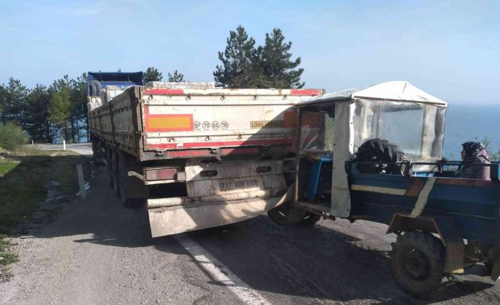 Kastamonu’da tarım aracının tıra çarpan pat pattaki vatandaşlar yara almadan kurtuldu.