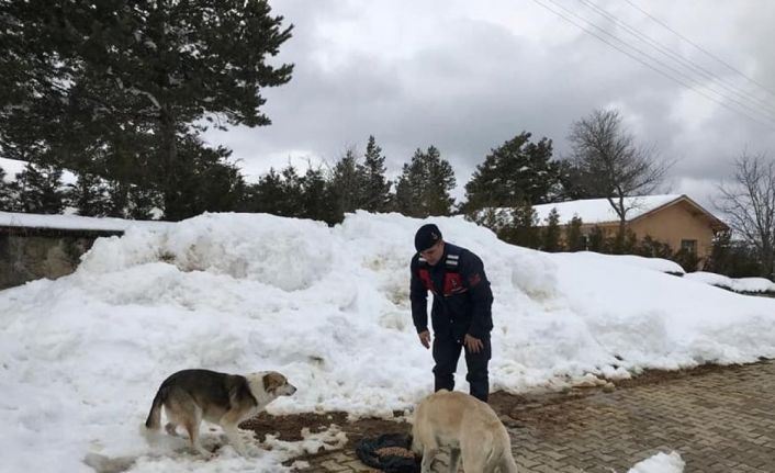 Kastamonu’nun Ağlı ilçesinde jandarma ve polis ekipleri sokak hayvanlarının bulunduğu alanlara mama bıraktı.