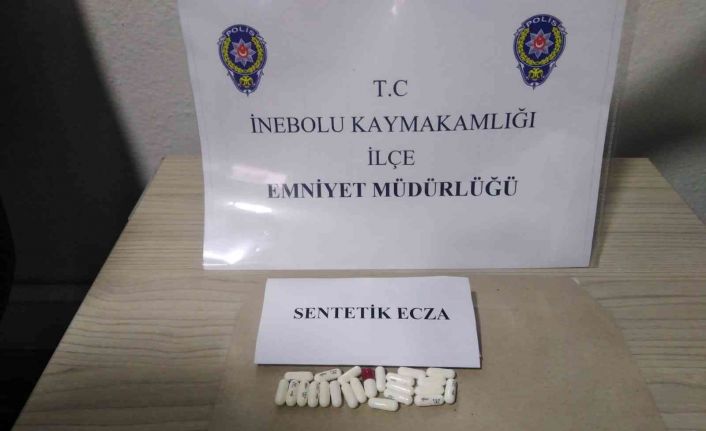 Edinilen bilgiye göre, İnebolu İlçe Emniyet Müdürlüğü ekipleri tarafından gelen ihbar üzerine bir iş yerinde arama yapıldı. Ekipler tarafından iş yerinde yapılan aramalarda, poşet içerisinde 23 adet sentetik ecza hapı ele geçirildi. Ekipler tarafından yapılan güvenlik kamerası incelemelerinde poşetin M.K. isimli şahsa ait olduğu tespit edildi.