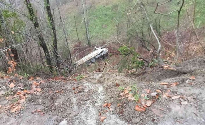 Kastamonu’nun Cide ilçesinde şarampole yuvarlanarak yaklaşık 100 metre sürüklenen kamyonun sürücüsü, araçtan atlayarak kurtuldu.