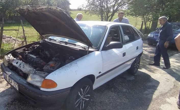 Seyir halinde motoru alev alan otomobili itfaiye söndürdü