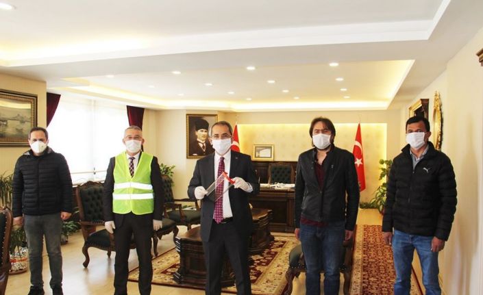 Deneme üretimi gerçekleştirilerek ilk üretilen maskeler Tosya Kaymakamı Deniz Pişkin’e takdim edildi.