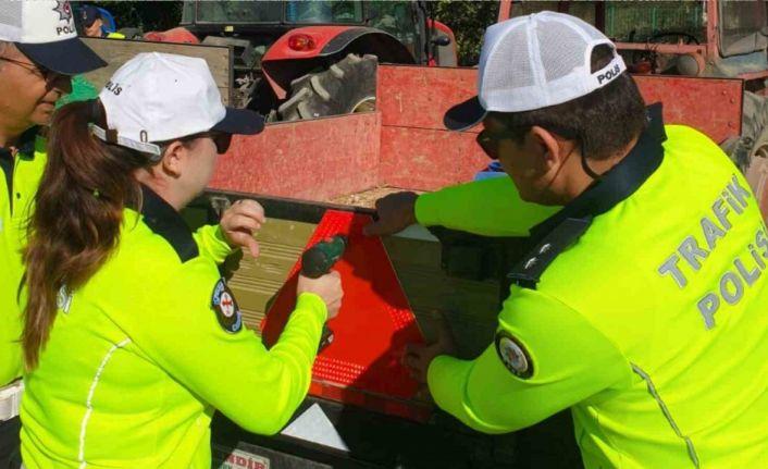 Kastamonu’nun Taşköprü ilçesinde şeker pancarı alım kampanyası öncesinde İlçe Jandarma Komutanlığı, İlçe Emniyet Müdürlüğü ve bölge trafik ekipleri tarafından traktör sürücülerine 55adet reflektör dağıtımı gerçekleştirildi. Traktör römorklarına reflektör takan İlçe Kaymakamı Bekir Özen, trafik kazalarını önlemeye yönelik sürücülere uyarılarda bulundu.
