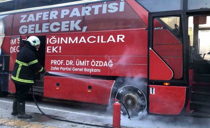 Kastamonu’nun İnebolu ilçesinde Zafer Partisi’ne ait seçim otobüsünde çıkan yangın itfaiye ekipleri tarafından söndürüldü.