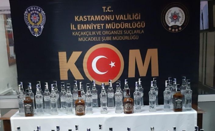 Edinilen bilgiye göre, Kastamonu Emniyet Müdürlüğüne bağlı Kaçakçılık ve Organize Suçlarla Mücadele Şube Müdürlüğü (KOM) ekiplerince, Kastamonu-Ankara karayolu uygulama noktasında durdurulan yolcu otobüsünde yapılan aramada bir yolcuya ait olan koliler içerisinde toplam 65 şişe alkollü içki şişesi ele geçirildi. Sahte içki şişelerine el konulurken, şahıs hakkında ise 5607 sayılı Kaçakçılıkla Mücadele Kanunu Hükümlerince adli işlem yapıldı.