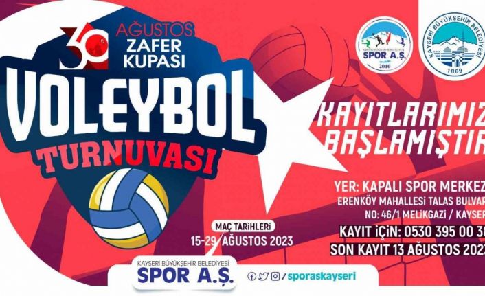 Kayseri Büyükşehir Belediyesi’nin büyük zafer için geleneksel hale getirdiği turnuvaları sürdürüyor. Bu çerçevede Spor A.Ş. tarafından yapılacak olan 30 Ağustos Zafer Kupası Voleybol Turnuvası kayıtları başladı.