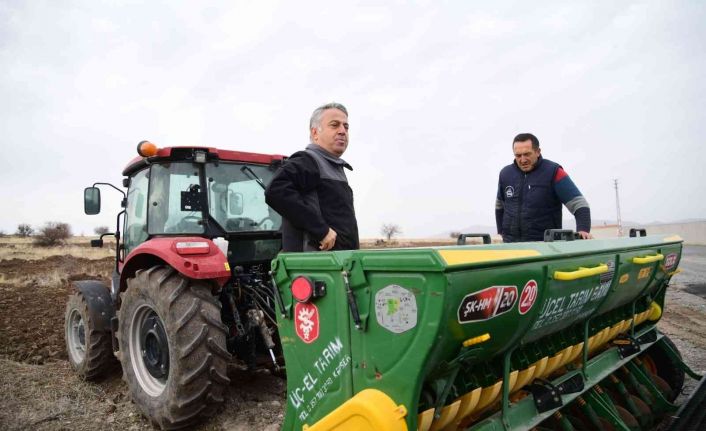 Kayseri’de atıl tarım arazilerin üretime kazandırılması, tarım alanlarının ve üretimin arttırılması, nadas alanların daraltılması ve ürün deseninin çoğaltılması amacıyla Tarım ve Orman Bakanlığı tarafından yüzde 75 hibeli ’Tohumdan Sofraya Ekmeklik Buğday’ Projesi kapsamında Kocasinan ilçesinde 53 üreticiye 20 ton ekmeklik buğday tohumu dağıtıldı. İl Tarım ve Orman Müdürü Mustafa Şahin de, ilçeye bağlı Emmiler Mahallesi’nde bulunan tarım işletmesini ziyaret ederek, tohum ekimi yapan üreticiye eşlik etti.