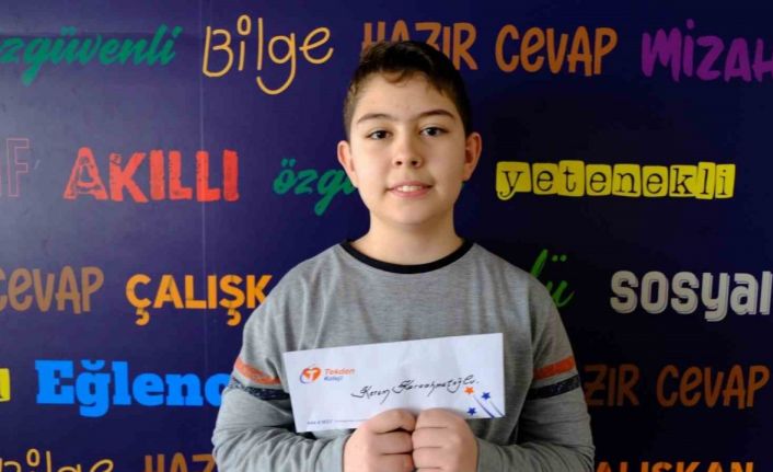 Kayseri Özel Tekden Ortaokulu’nda düzenlenen İstiklal Marşı okuma yarışmasında birinci olan 7.sınıf öğrencisi Kerem Karaahmetoğlu, kazandığı ödülü depremzedelere bağışladı.