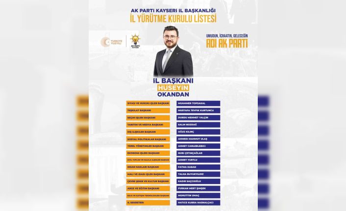 Hüseyin Okandan’ın AK Parti Kayseri İl Başkanı olduğu İl Yürütme Kurulu Listesi şu şekilde oluştu: