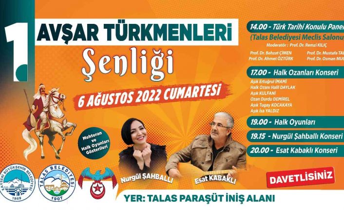 Avşar Türkmenleri, Büyükşehir ve Talas Belediyeleri ile Dünya Avşarlar Derneği tarafından ortaklaşa düzenlenecek şenlikte bir araya geliyor.