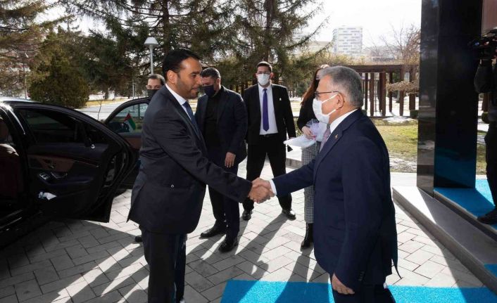 Kayseri’ye ilk defa gelen Birleşik Arap Emirlikleri(BAE) Ankara Büyükelçisi Saeed Thani Hareb Al Dhaheri, Büyükşehir Belediye Başkanı Dr. Memduh Büyükkılıç’a nezaket ziyaretinde bulundu. Başkan Büyükkılıç, Birleşik Arap Emirlikleri Ankara Büyükelçisi Saeed Thani Hareb Al Dhaheri ve beraberindeki heyeti, Büyükşehir Belediyesi Başkanlık giriş kapısında çiçeklerle karşıladı.