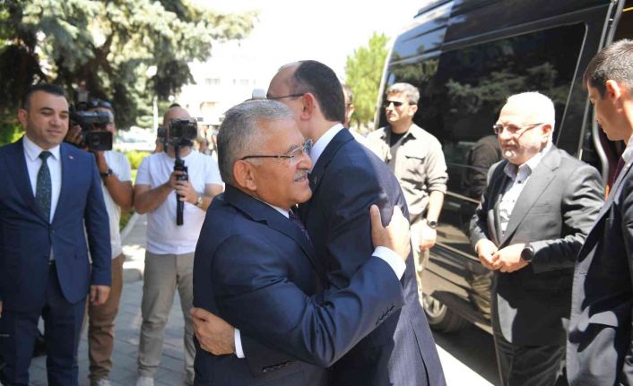 Ticaret Bakanı Mehmet Muş, Kayseri Büyükşehir Belediye Başkanı Memduh Büyükkılıç’ı makamında ziyaret etti. Başkan Büyükkılıç Kayseri’nin ticaretin yasalarının yazıldığı 6 bin yıllık şehir olduğunu söylerken, Bakan Muş da Başkan Büyükkılıç’a yaptığı yatırım ve hizmetlerden dolayı tebrik ve teşekkürlerini iletti.