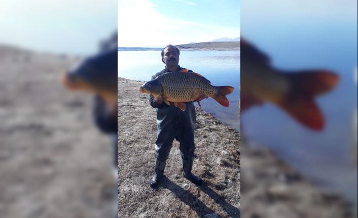 Kayseri’deki Gümüşören baraj gölünde avlanan köylüler, 150 santim uzunluğunda balık yakaladı.