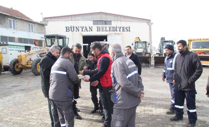 Bünyan Belediye Başkanı Özkan Altun, Bünyan Belediyesi Fen İşleri Müdürlüğüne bağlı Depo Saha Amirliğinde ekiplerle bir araya gelerek Regaip Kandillerini kutladı.