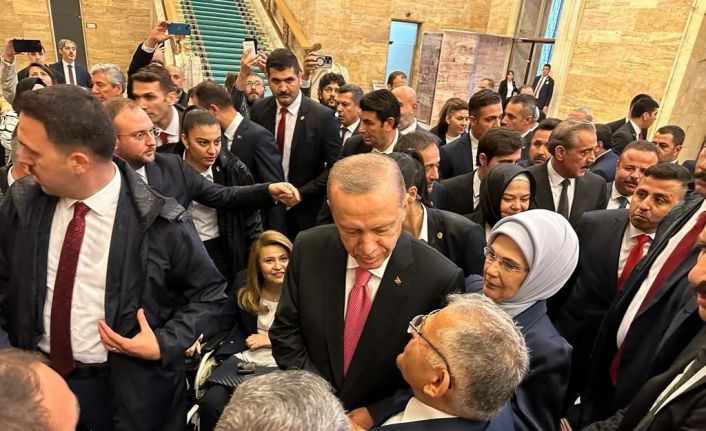Cumhurbaşkanı Recep Tayyip Erdoğan ile Türkiye Büyük Millet Meclisi (TBMM) Genel Kurulu’nda yemin töreni öncesi görüşen Başkan Büyükkılıç, Cumhurbaşkanı Erdoğan’a Kayserililerin selamlarını iletti. Başkan Büyükklıç, Cumhurbaşkanlığı Külliyesi’ndeki “Göreve Başlama Töreni’ne de katıldı. Büyükkılıç, 21 devlet başkanı, 13 başbakanın da katıldığı toplantı ile ilgili yaptığı açıklamada, “Aziz Türk milletinin iradesiyle yeniden Cumhurbaşkanı seçilen Recep Tayyip Erdoğan ile bir araya gelerek, siz değerli hemşehrilerimizin selam ve sevgilerini ilettik. Türkiye Yüzyılı başlıyor. Son 21 yılda olduğu gibi bütün gücümüzle hizmet etmeye devam edeceğiz” diye konuştu. Kayseri Büyükşehir Belediye Başkanı Dr. Memduh Büyükkılıç, Ankara temasları çerçevesinde Türkiye Büyük Millet Meclisi’ne de misafir olarak, burada Cumhurbaşkanı Erdoğan’ın yemin törenine şahitlik etti. Bakan localarının olduğu alanda yemin törenini takip eden Başkan Büyükkılıç, bakanlarla birlikte sıcak ve samimi sohbet gerçekleştirerek, yeni dönem parlamentosunu ilgiyle takip etti. Türkiye Cumhuriyeti Cumhurbaşkanı Recep Tayyip Erdoğan mecliste, mazbatasını TBMM Geçici Başkanı Devlet Bahçeli’den alarak, yemin edip, görevine başladı. O anlara şahitlik eden Başkan Büyükkılıç, “Cumhurbaşkanımız Recep Tayyip Erdoğan’ın Gazi Meclisimizdeki yemin törenine şahitlik etmenin onur ve mutluluğunu yaşadık” ifadelerini kullandı. Büyükkılıç, yeni dönemin ülkeye ve millete hayırlı olmasını temenni etti.