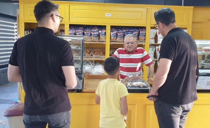 Tuna Caddesi’nde vatandaşa hizmet veren Glütensiz Kafe’de tezgâh başına geçen Başkan Büyükkılıç, ürünleri inceledi.