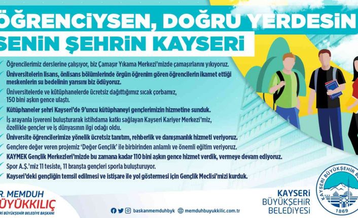 Kayseri Büyükşehir Belediye Başkanı Dr. Memduh Büyükkılıç, üniversite tercihlerinde Kayseri şehrini tercih eden öğrencilerin doğru adreste olduklarını belirterek, “Öğrenciysen doğru yerdesin, senin şehrin Kayseri” dedi.