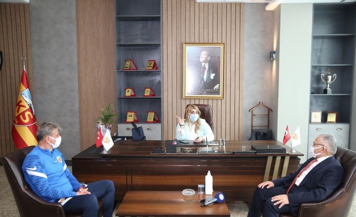 Geçtiğimiz hafta sarı kırmızılı takımın yeni teknik direktörü Hazma Hamzaoğlu ve teknik heyetinin kendisini ziyaret etmesinin ardından iade-i ziyarette bulunan Büyükşehir Belediye Başkanı Dr. Memduh Büyükkılıç’ı, tesislerde HES Kablo Kayserispor Başkanı Berna Gözbaşı, Teknik Direktör Hamza Hamzaoğlu ve yönetim kurulu üyeleri karşıladı.